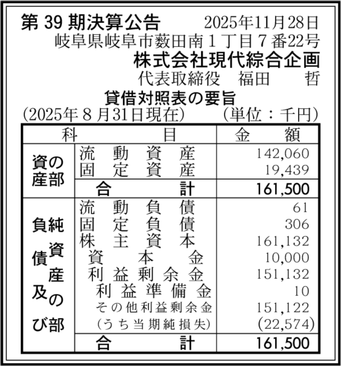 | 利益剰余金 | 1億5,113万2,000円 (▲13.0%) |