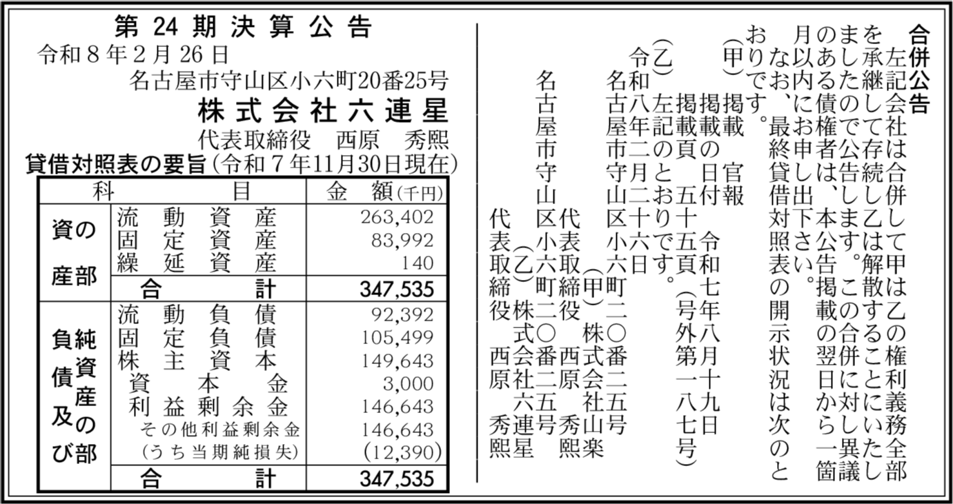 | 会社名 | 株式会社六連星 |