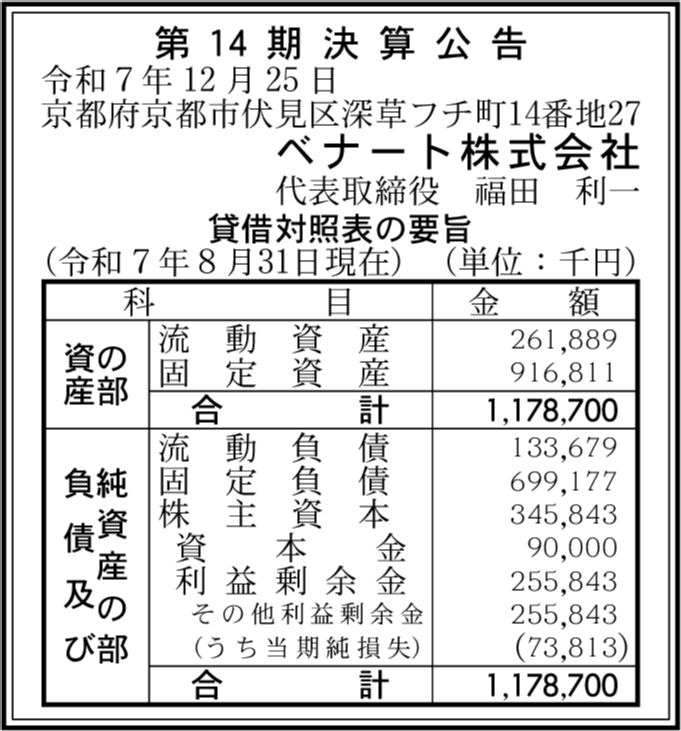 | 会社名 | ベナート株式会社 |
