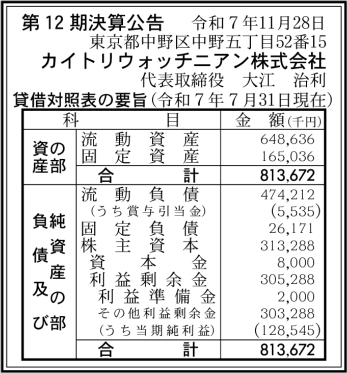 | 会社名 | カイトリウォッチニアン株式会社 |