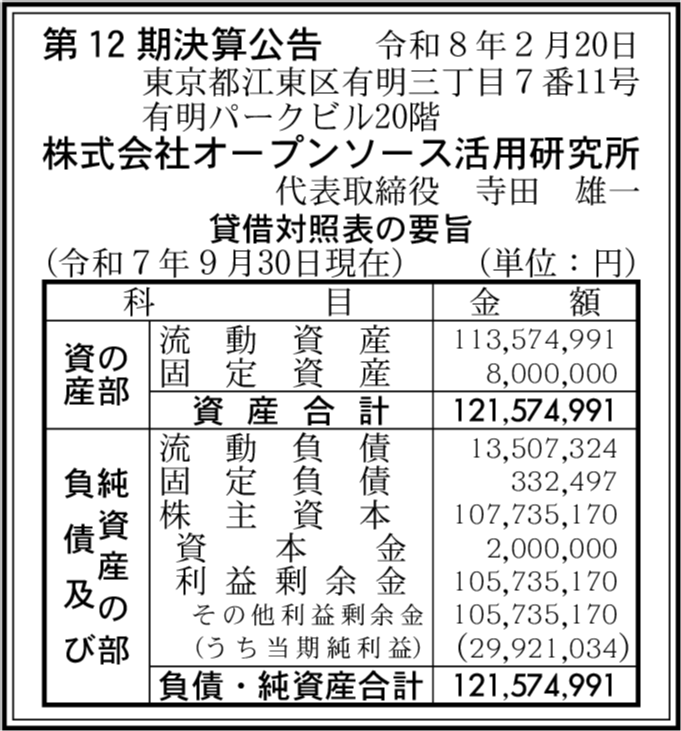 | 会社名 | 株式会社オープンソース活用研究所 |