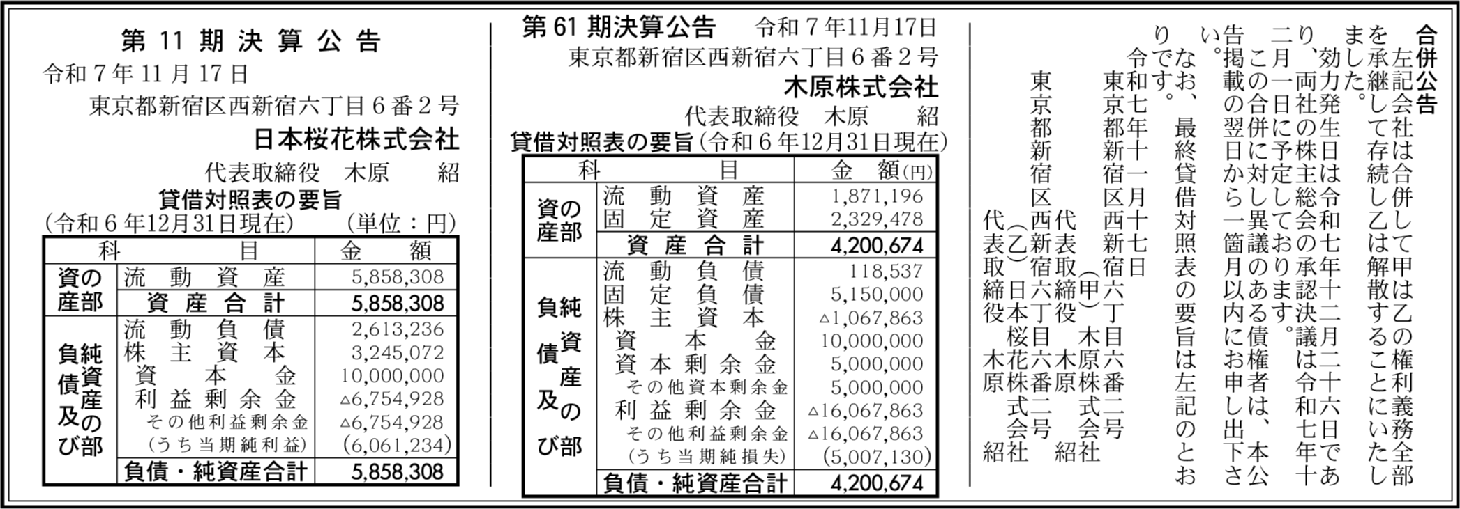 木原株式会社 東京都新宿区 【2024年12月期】 |