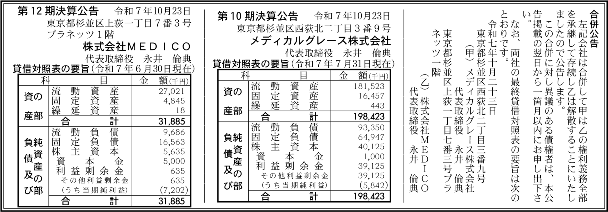 株式会社MEDICO 東京都杉並区 【2025年6月期】 |