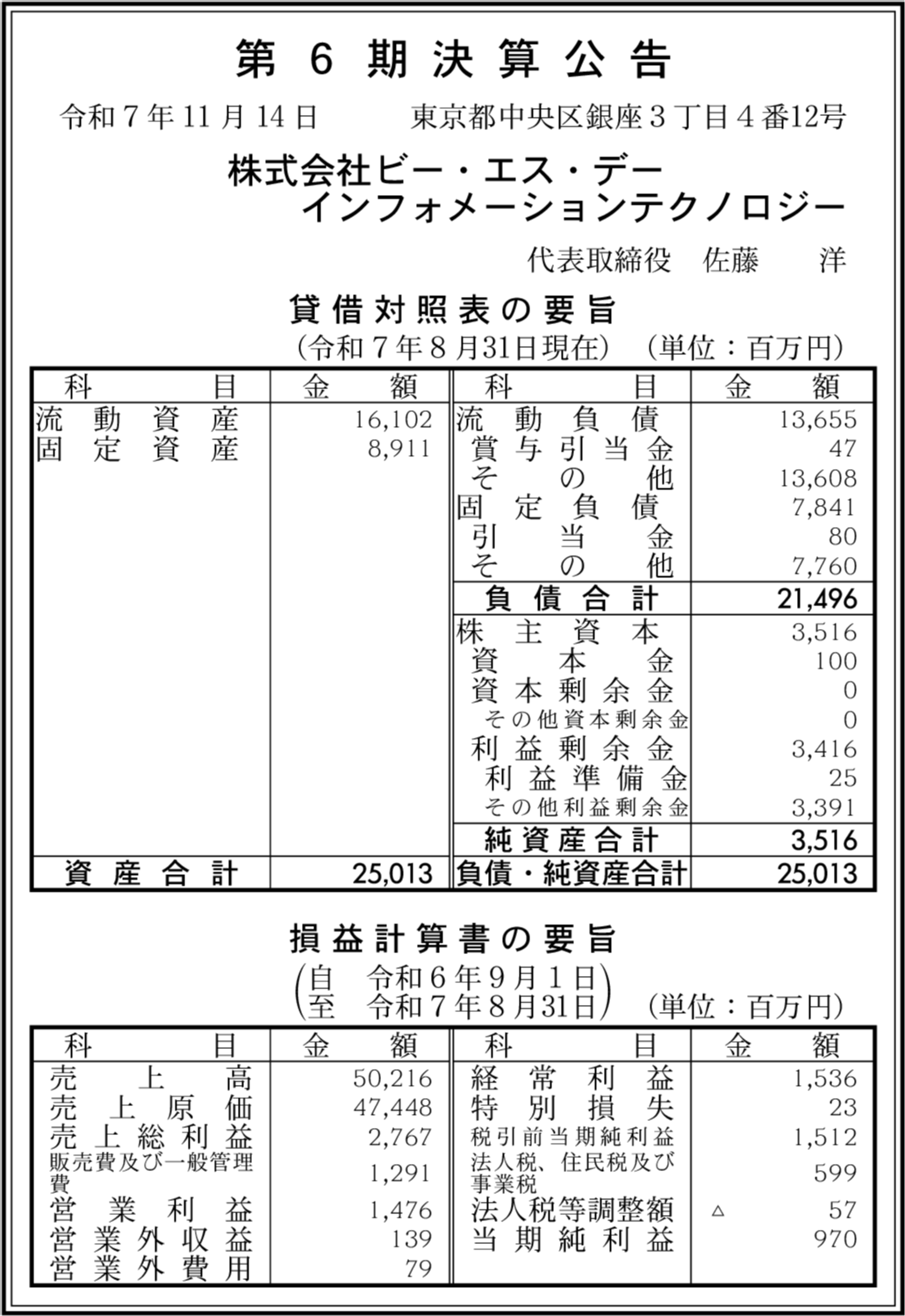ビー・エス・デー・エンジニアリング株式会社 東京都中央区 【2025年8月期】 |