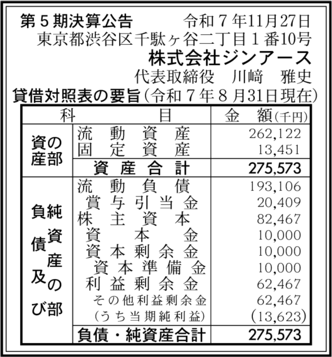 | 会社名 | 株式会社ジンアース |