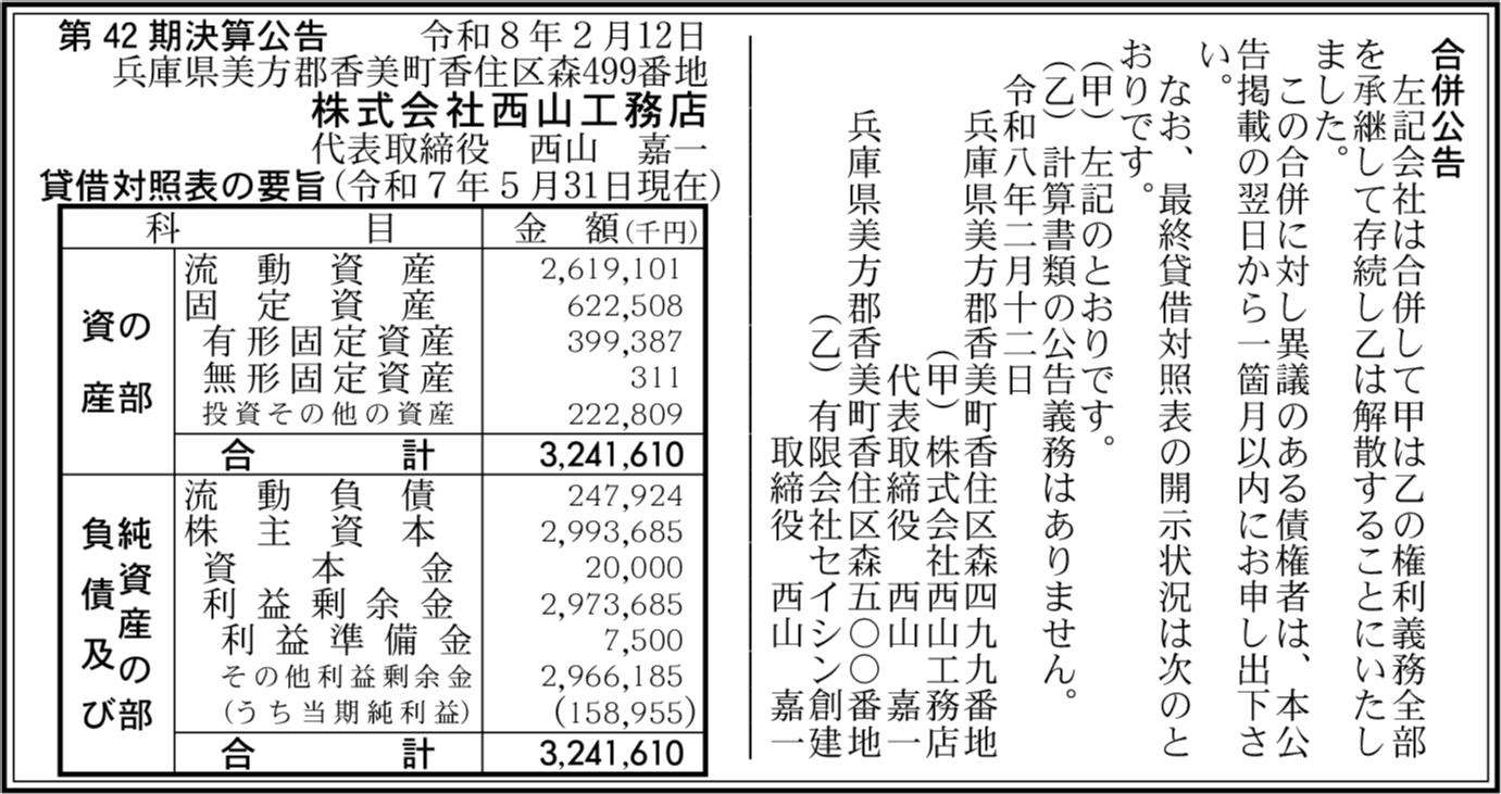 | 会社名 | 株式会社西山工務店 |