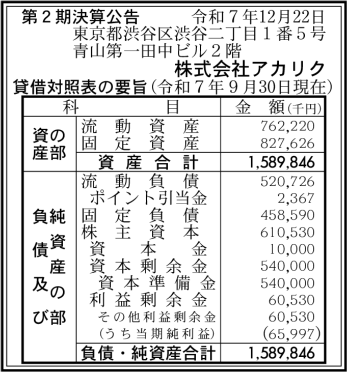 株式会社アカリク閉鎖済み 東京都渋谷区 【2024年9月期】 |