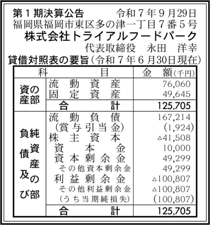 株式会社トライアルリアルエステート 福岡県福岡市東区 【2025年6月期】 |