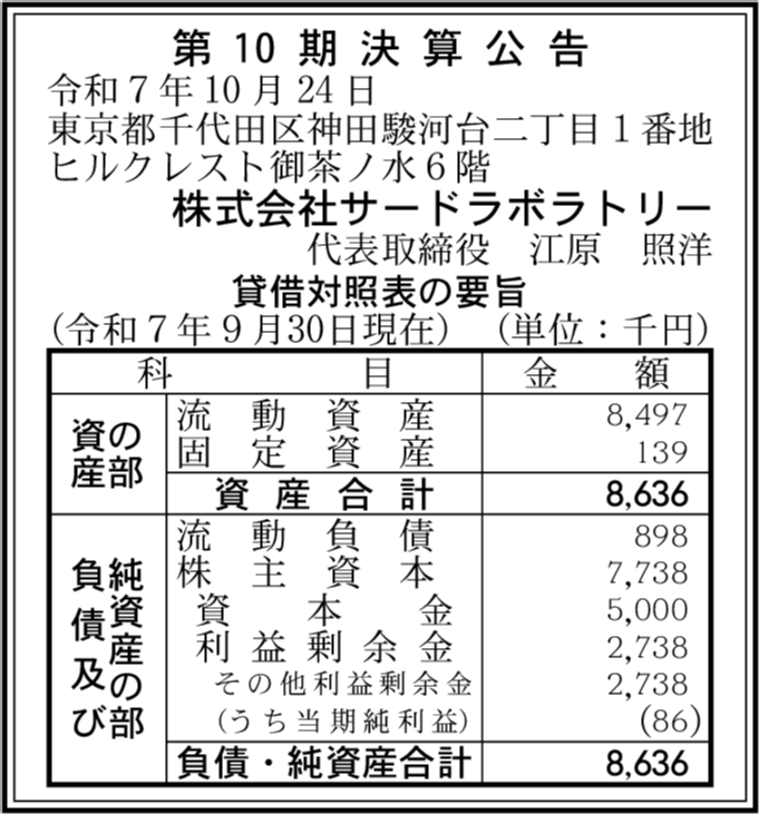 | 会社名 | 株式会社サードラボラトリー |