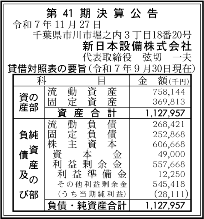 | 会社名 | 新日本設備株式会社 |