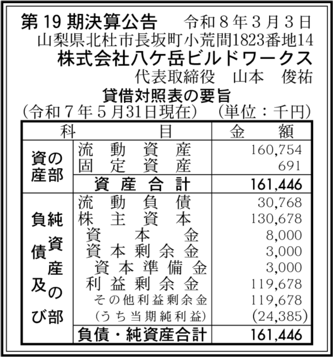 株式会社アットライフ八ケ岳 山梨県北杜市 【2025年5月期】 |