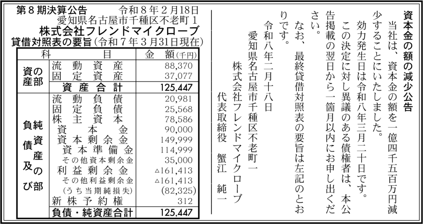 | 利益剰余金 | ▲1億6,141万3,000円 |
