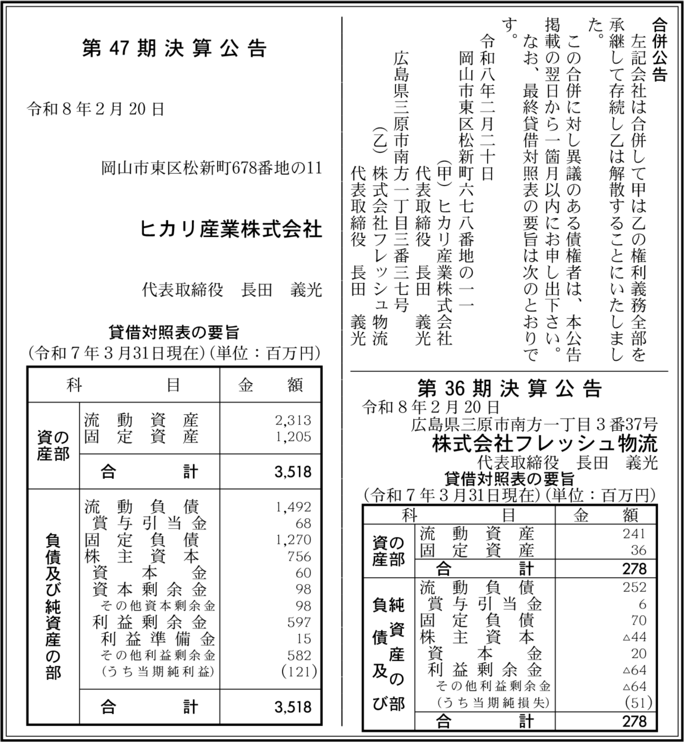 株式会社フレッシュ物流 広島県三原市 【2025年3月期】 |