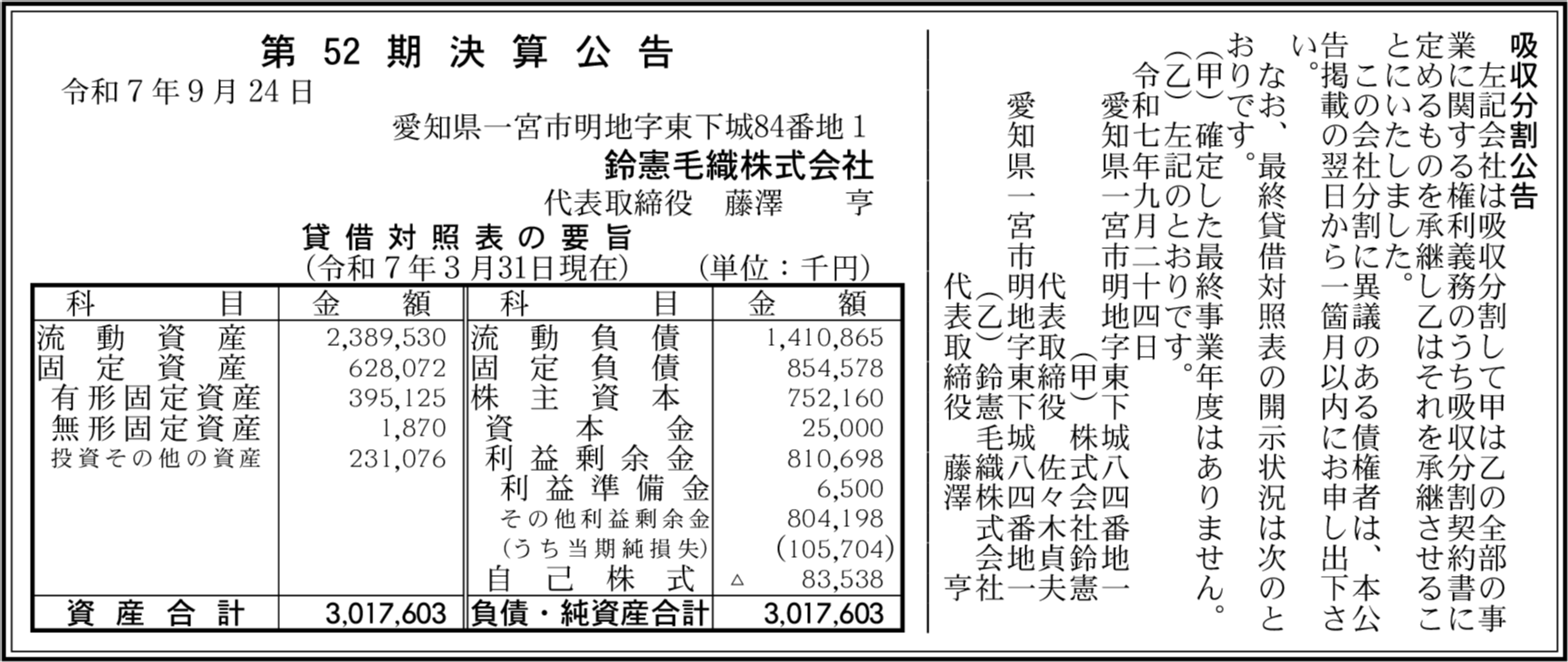 豊島株式会社 愛知県一宮市 【2025年6月期】 |