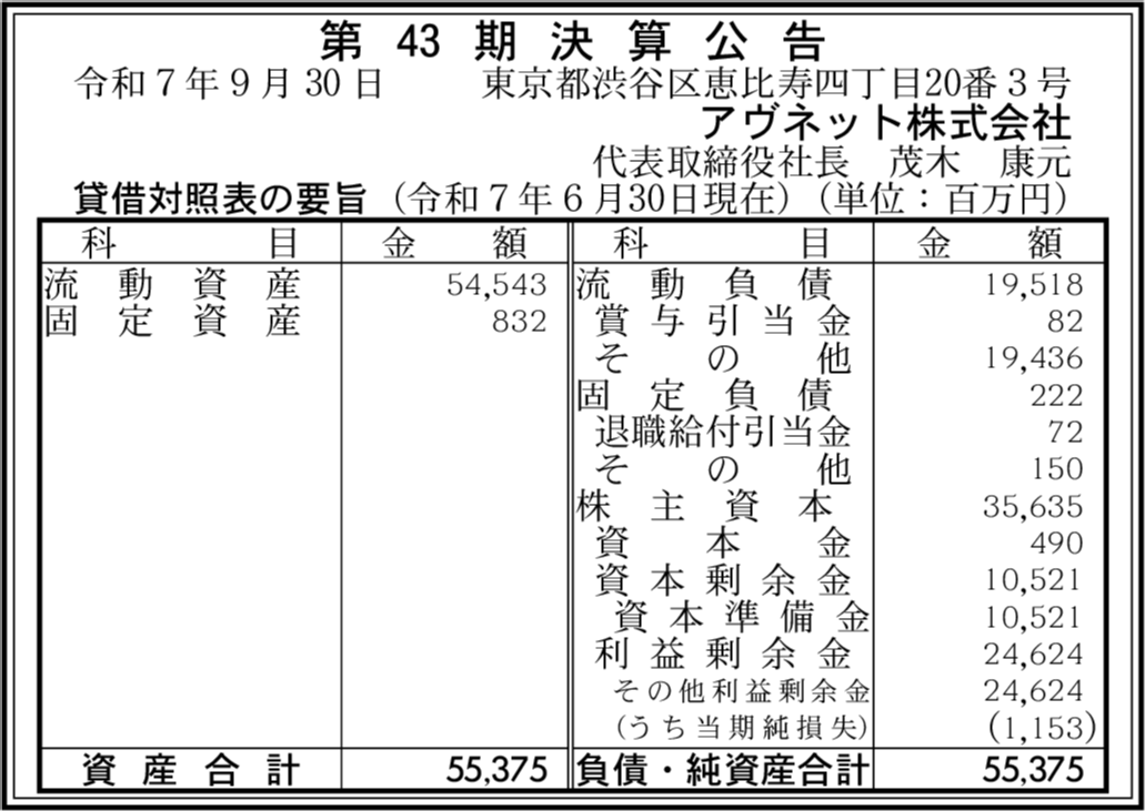 | アヴネット・イーエム・ホールディングス・ジャパン株式会社 東京都渋谷区 【2025年6月期】 | 1,000万円 (黒字転換) | △10億2,800万円 (赤字縮小) | 8億2,500万円 (+115.97%) |