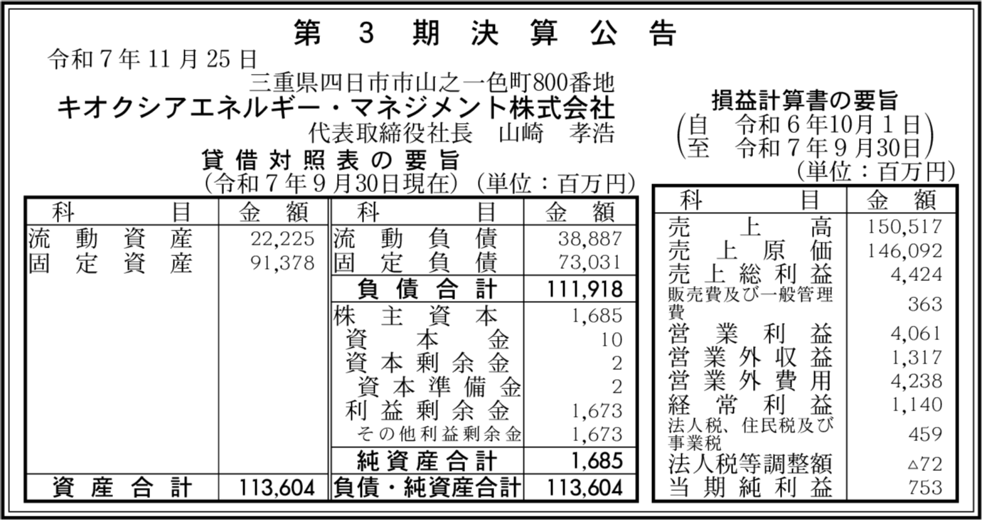 キオクシアエトワール株式会社 三重県四日市市 【2025年3月期】 |