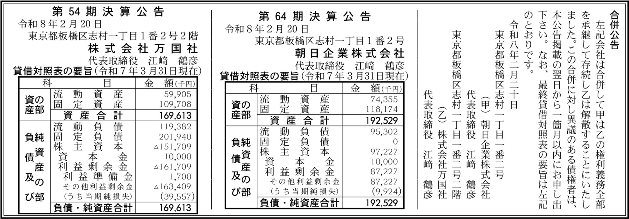 株式会社万国社 東京都板橋区 【2025年3月期】 |