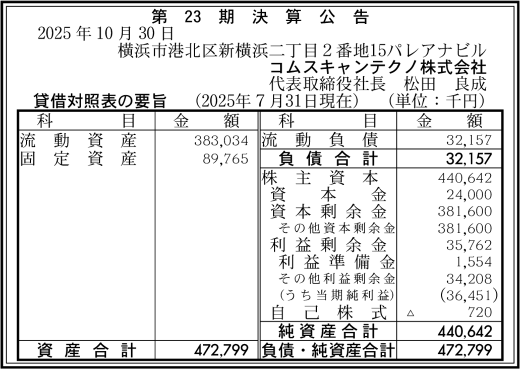 | 会社名 | コムスキャンテクノ株式会社 |
