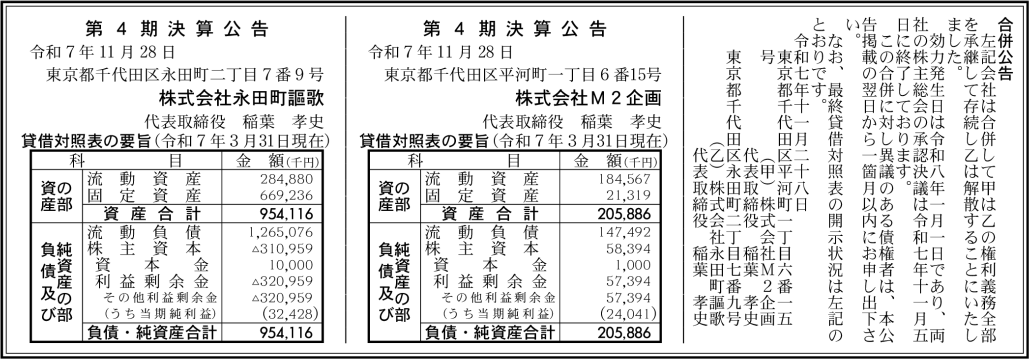 株式会社M2企画 東京都千代田区 【2025年3月期】 |