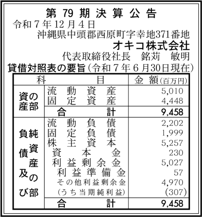 株式会社オキコストア 沖縄県中頭郡西原町 【2017年6月期】 |