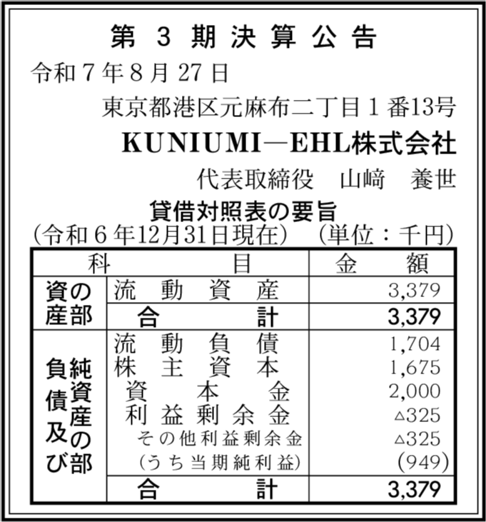 利益剰余金 | △32万5,000円 (赤字縮小) |