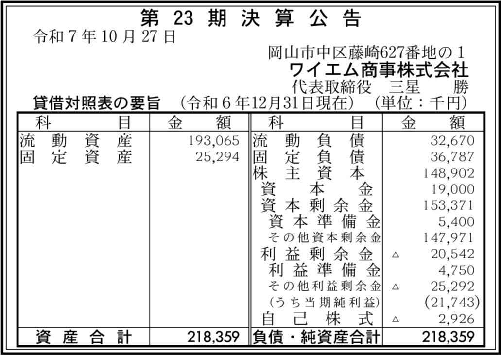 大和興産株式会社 岡山市中区 【2025年3月期】 |