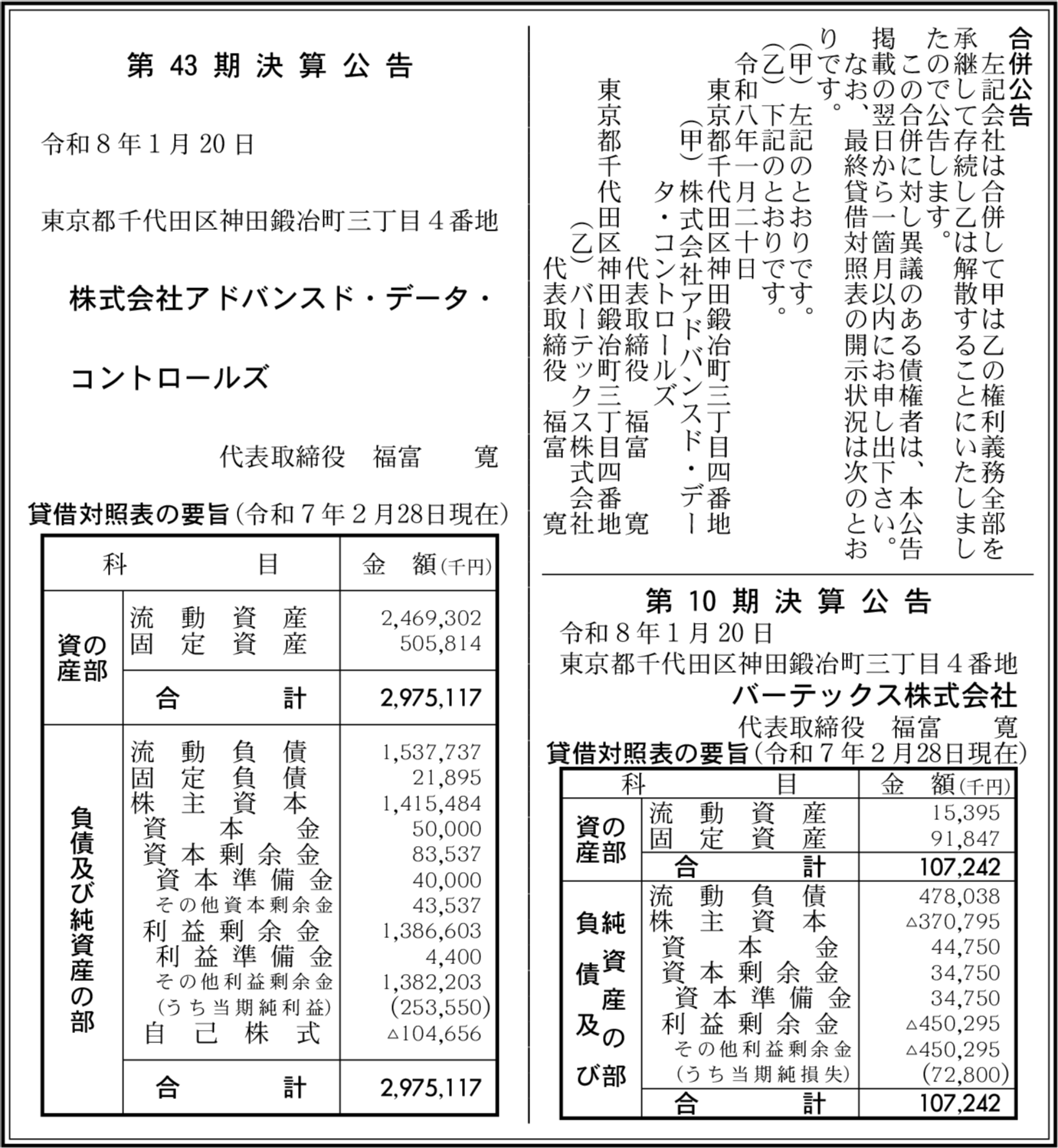 バーテックス株式会社 東京都千代田区 【2025年2月期】 |