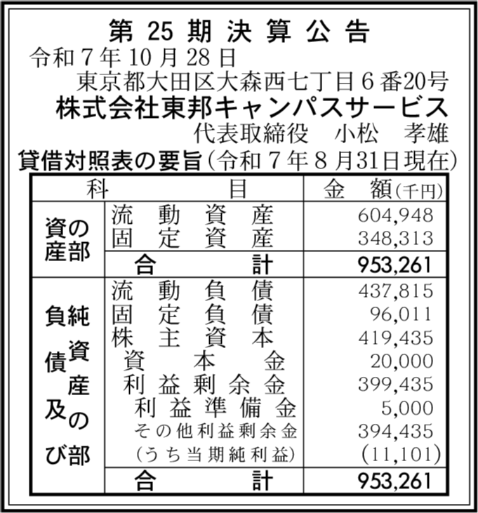 | 会社名 | 株式会社東邦キャンパスサービス |