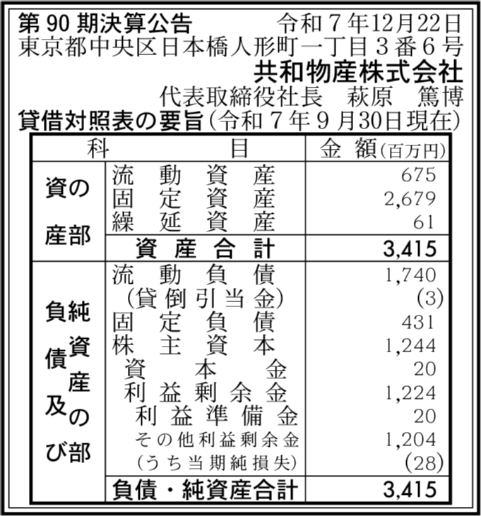 共和運輸株式会社 東京都中央区 【2025年9月期】 |