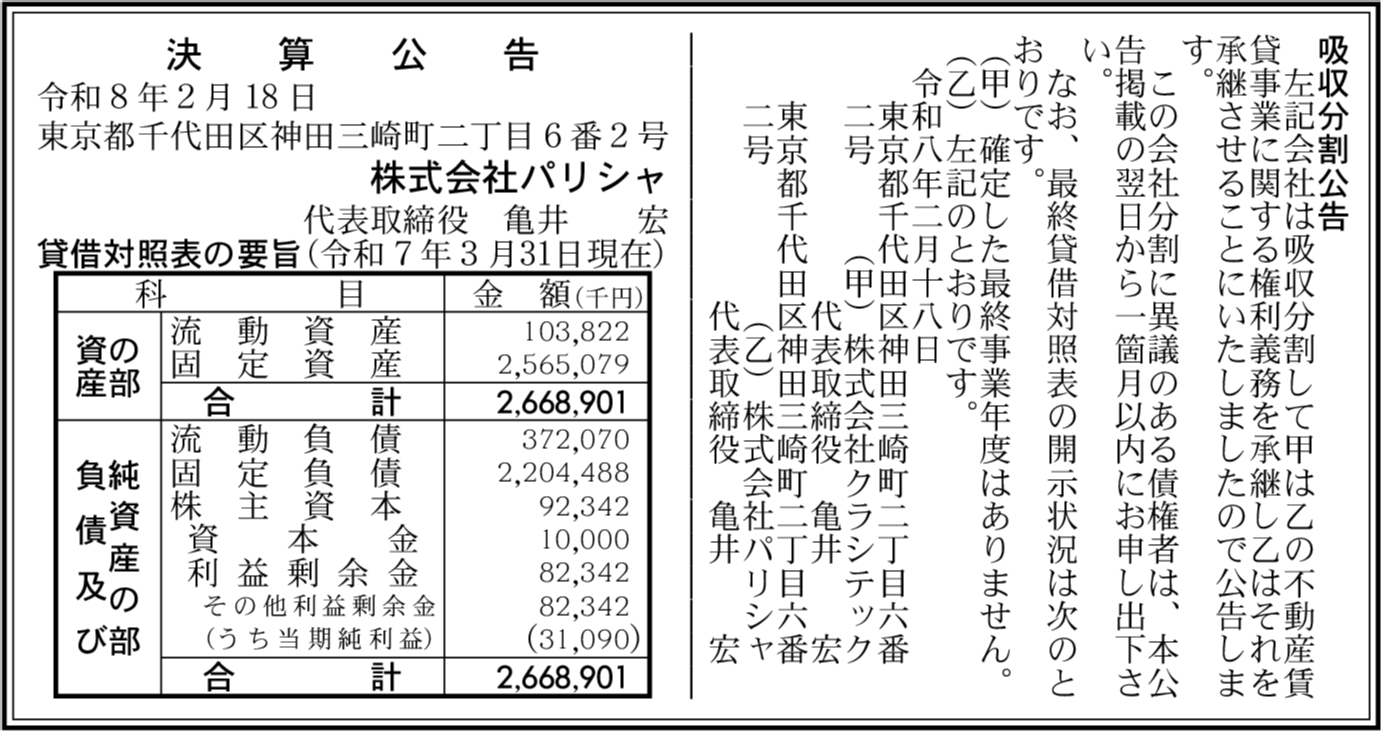 株式会社コスモアルファ 東京都千代田区 【2025年3月期】 |