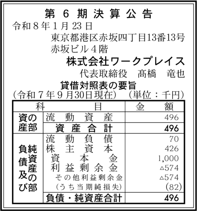 | 会社名 | 株式会社ワークプレイス |