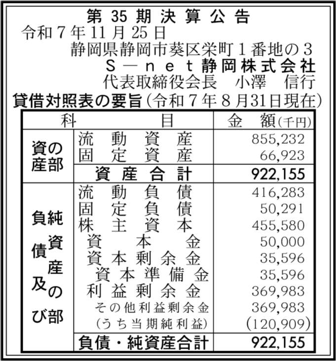 S-net静岡株式会社 静岡県静岡市葵区 |