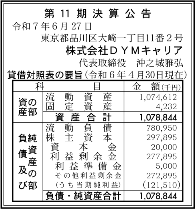 株式会社DYM 東京都品川区 【2025年4月期】 |