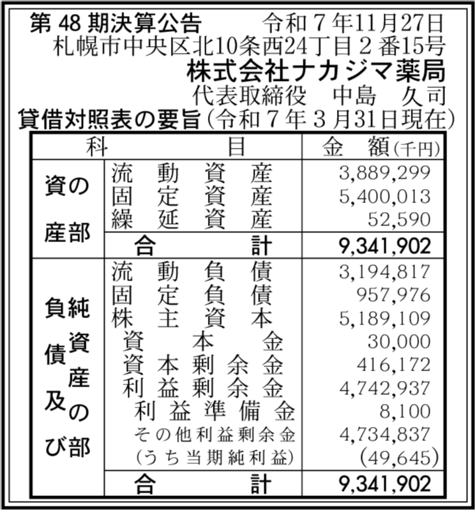 | 会社名 | 株式会社ナカジマ薬局 |