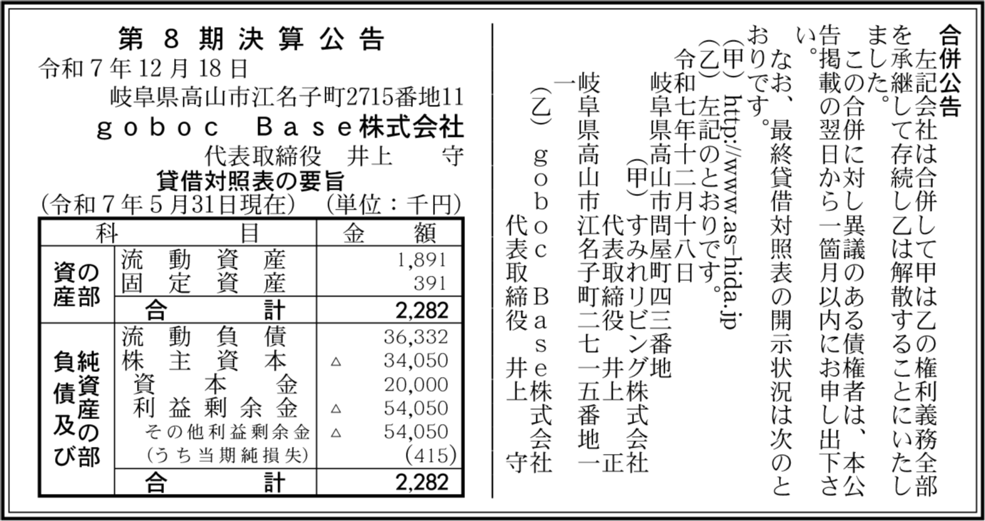 株式会社飛騨セルトップ 岐阜県高山市 【2025年5月期】 |
