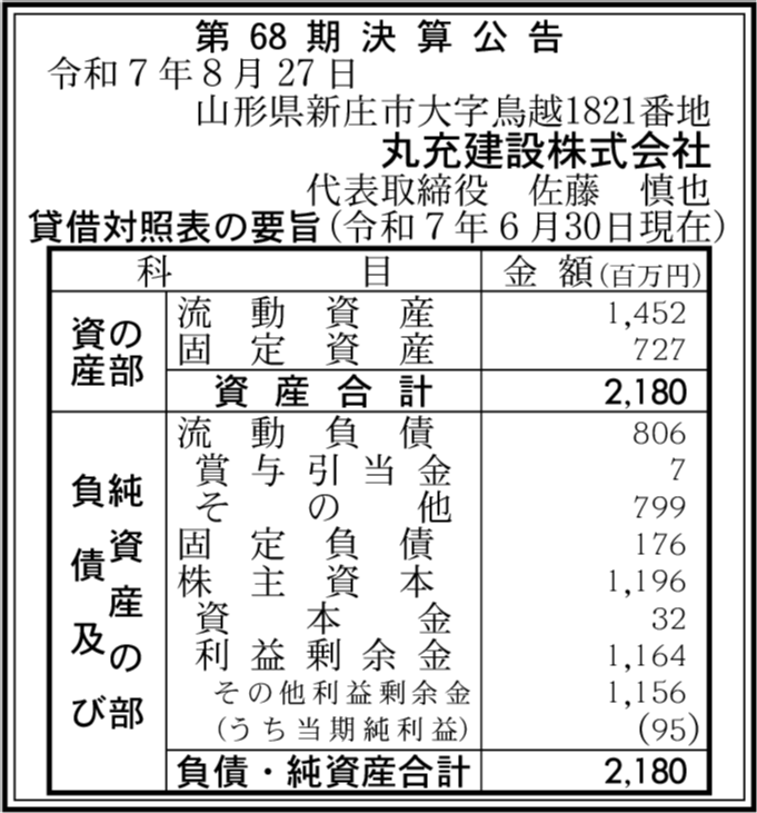 沼田建設株式会社 山形県新庄市 【2025年3月期】 |