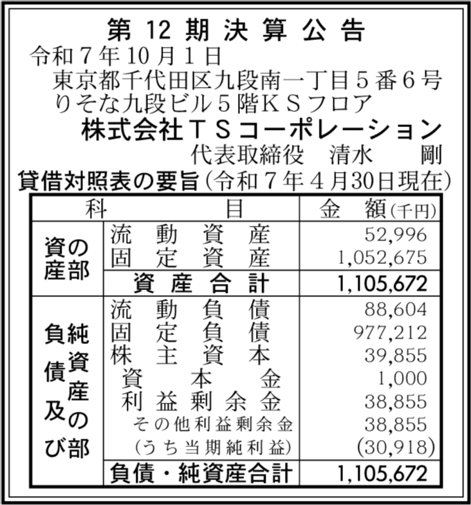会社名 | 株式会社TSコーポレーション |