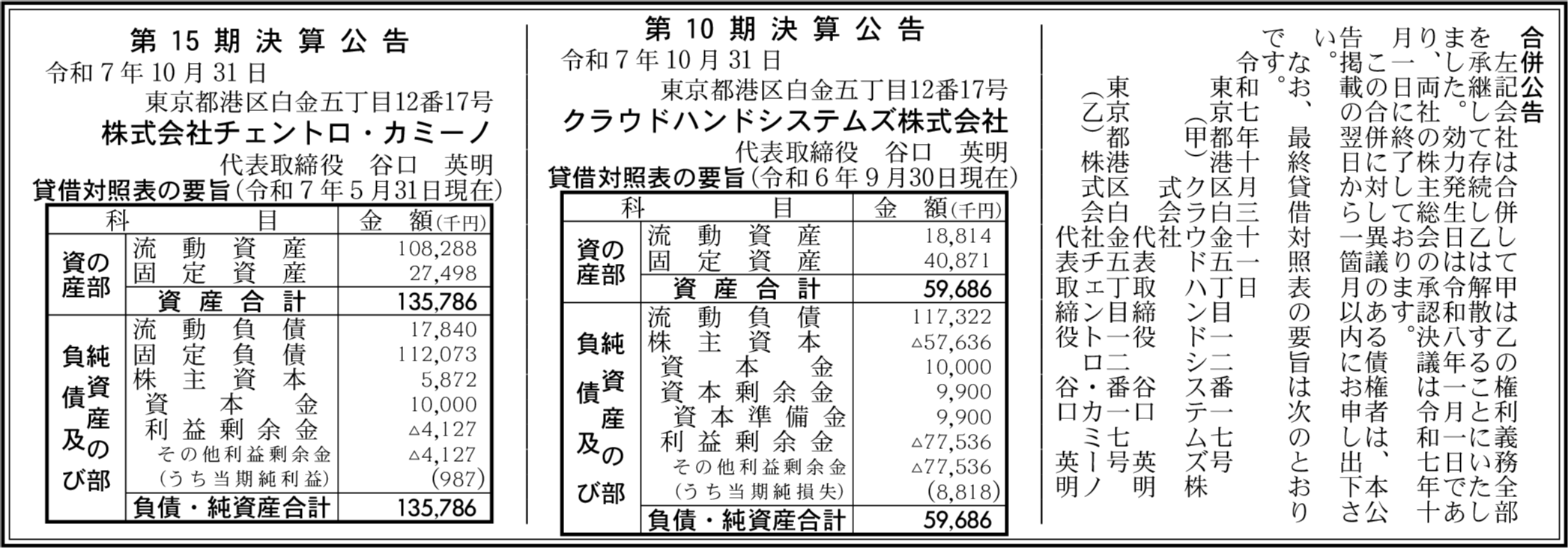 クラウドハンドシステムズ株式会社 東京都港区 【2024年9月期】  |