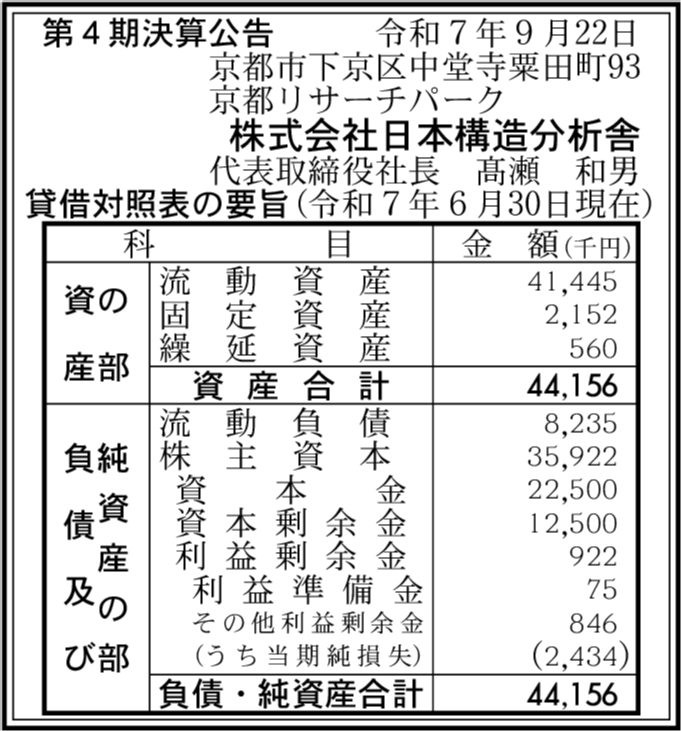 | 利益剰余金 | 92万2,000円 (▲74.42%) |