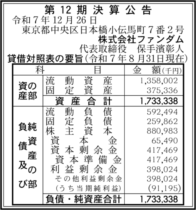 | 利益剰余金 | 3億9,802万4,000円 (+29.72%) |