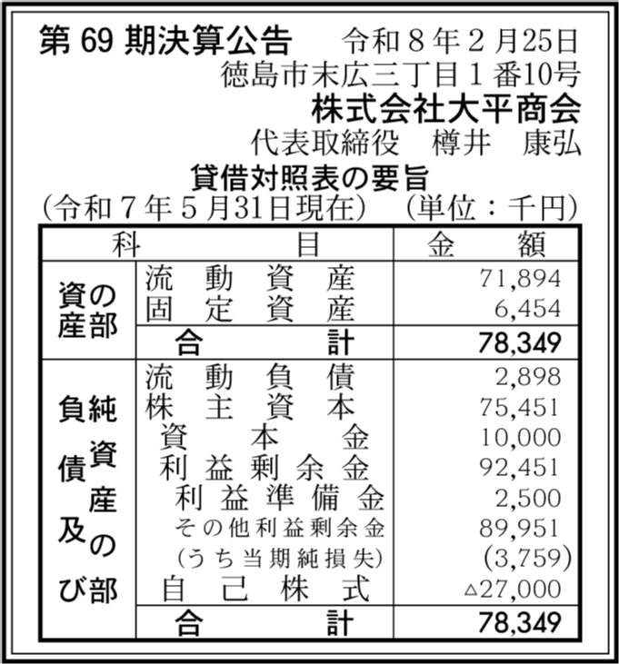 | 会社名 | 株式会社大平商会 |