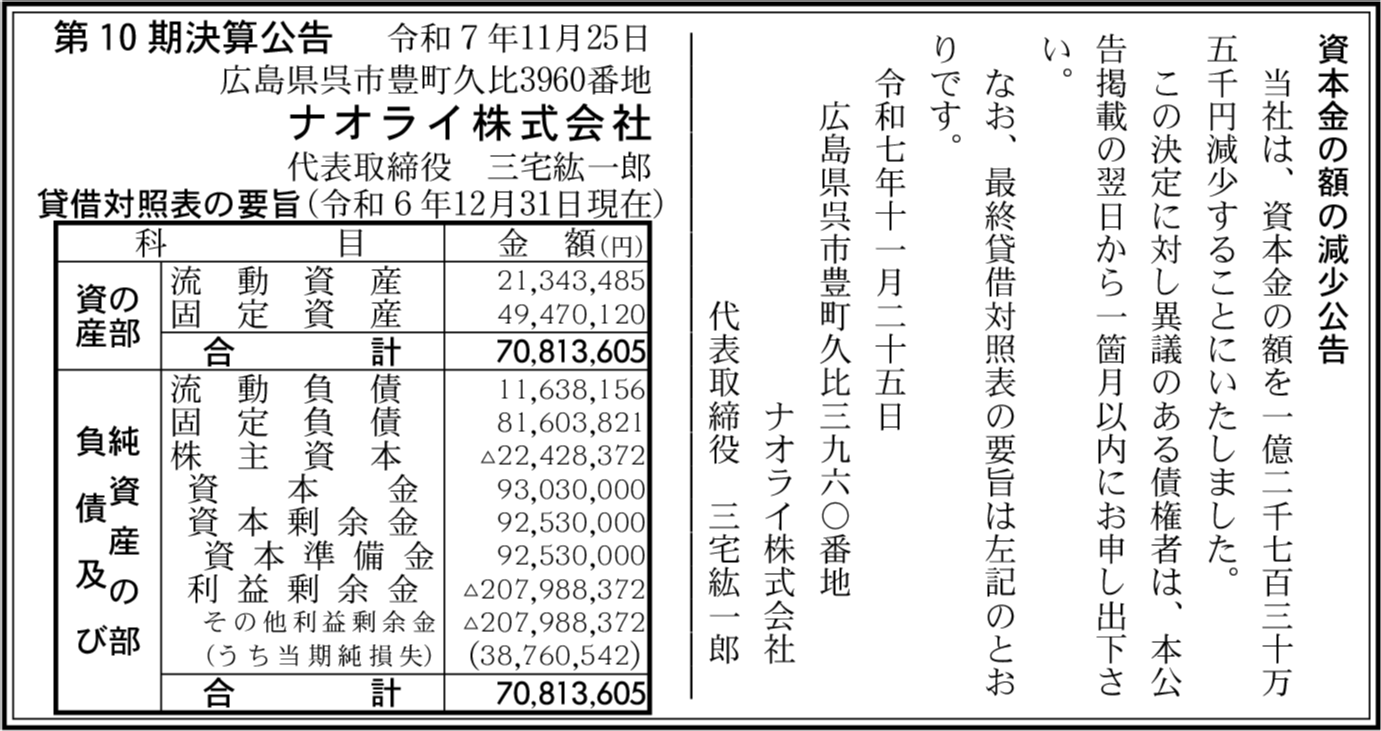 | 会社名 | ナオライ株式会社 |