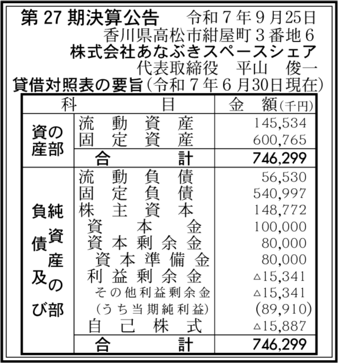 株式会社あなぶき会計事務センター 香川県高松市 【2025年6月期】 |
