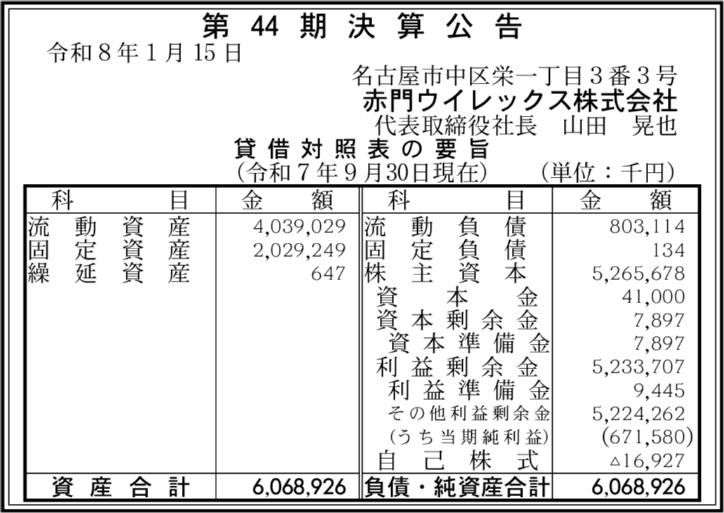株式会社赤松 名古屋市中区 【2025年3月期】 |