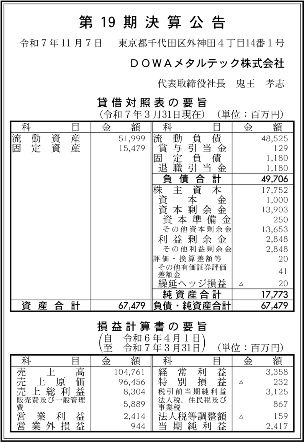 DOWAマネジメントサービス株式会社 東京都千代田区 【2025年3月期】 |