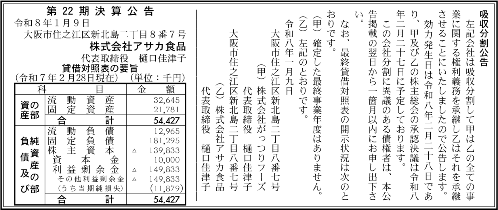 | 会社名 | 株式会社アサカ食品 |