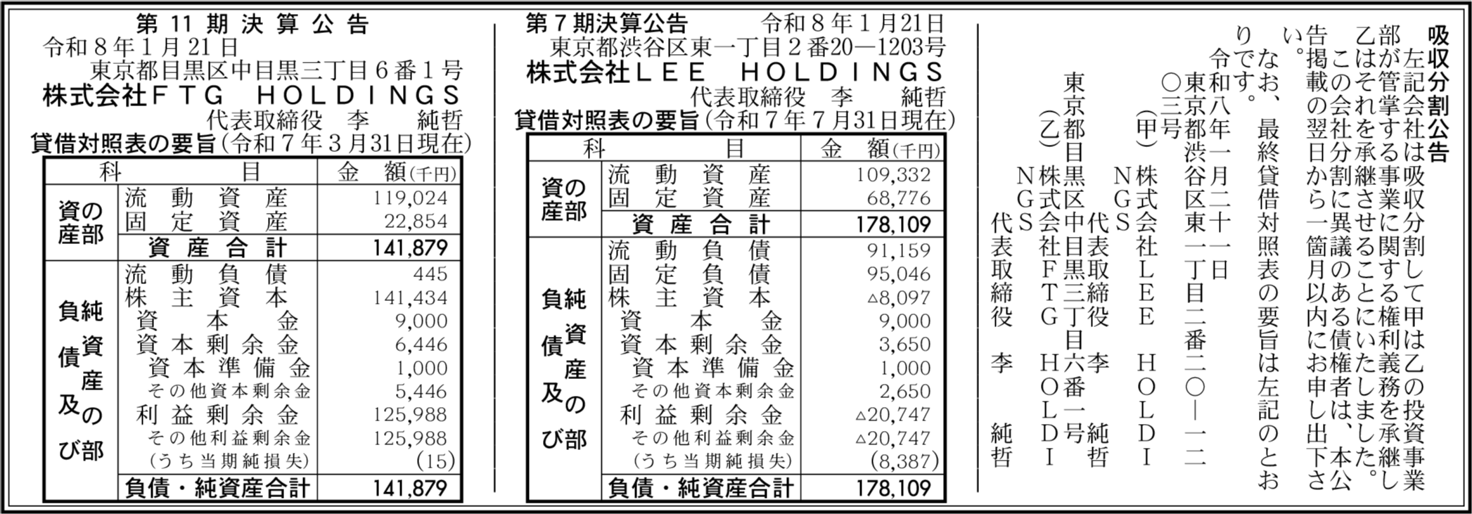 株式会社FTG HOLDINGS 東京都目黒区 【2025年3月期】 |