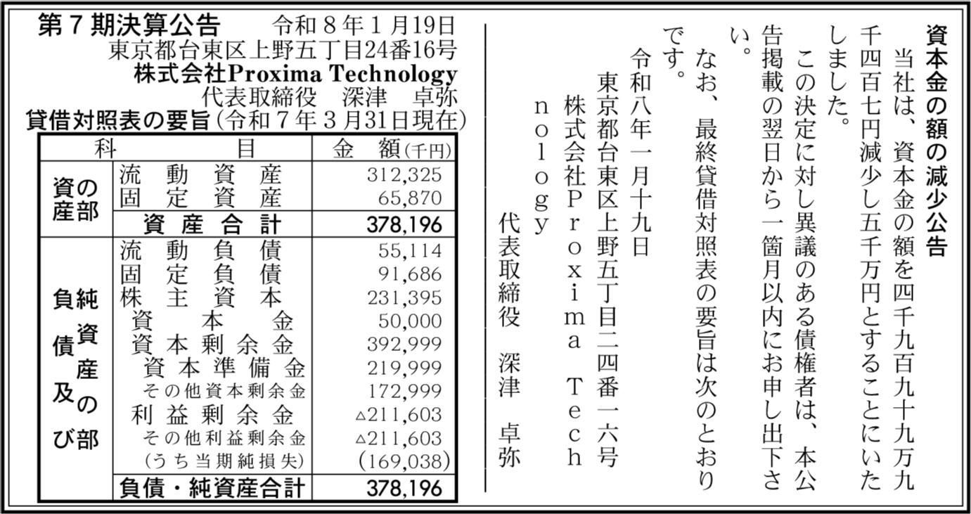 | 会社名 | 株式会社Proxima Technology |