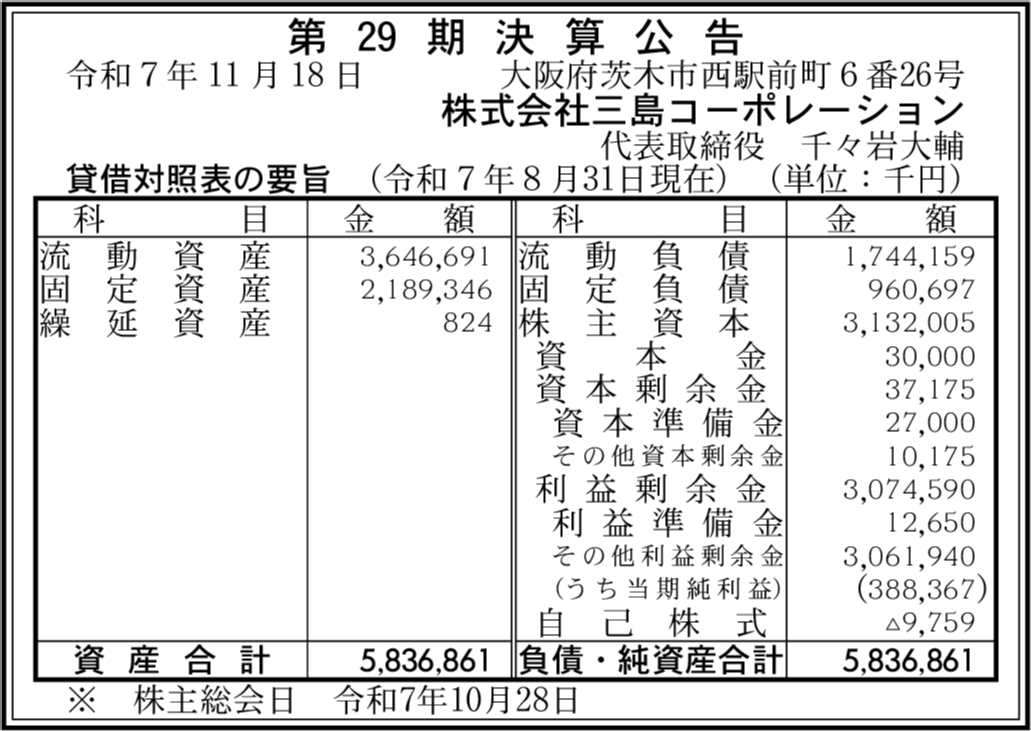 | 総資産 | 58億3,686万1,000円 (+2.8%) |
