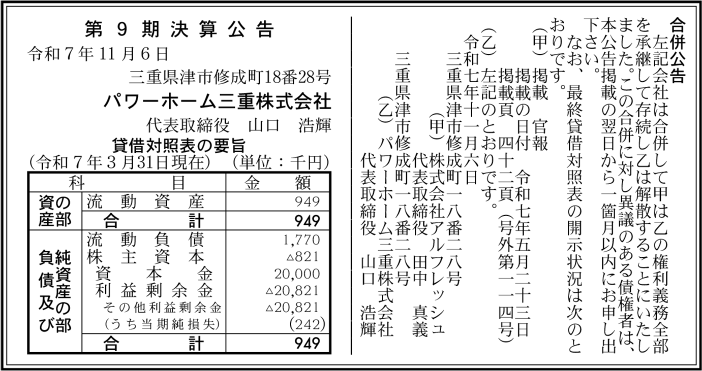 株式会社別所書店 三重県津市 【2025年7月期】 |